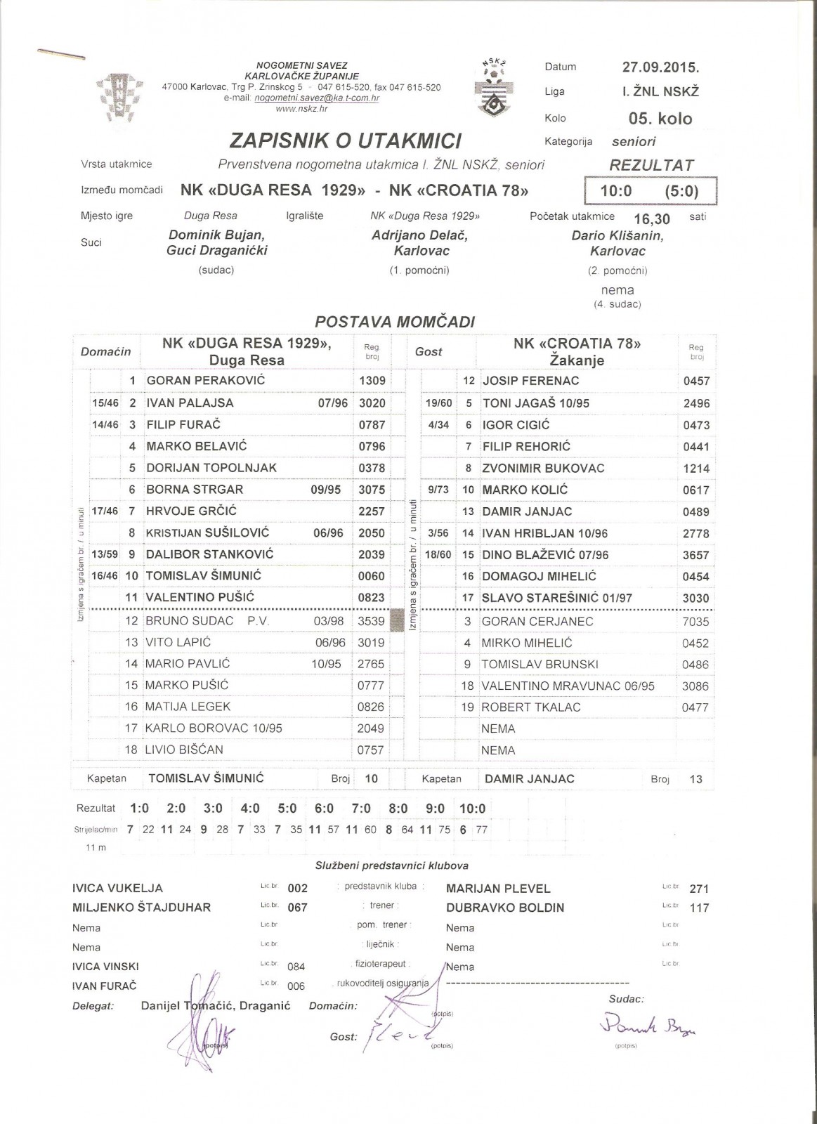 Vrlo raspoloženi bili su strijelci u 5. kolu 1. Županijske nogometne lige. Na 5 susreta postignuto je 25 pogodaka, odnosno čak 5 po susretu. Najefikasniji su bili igrači Duge Rese 1929 koji su s 10:0 pobijedili Croatiju ’78. Čak 4 pogotka postigao je Valentino Pušić, a tri Hrvoje Grčić. HAt trick je i djelo Tomislava Starešine u pobjedi Zrinskog Ozlja nad Ilovcem 5:0.