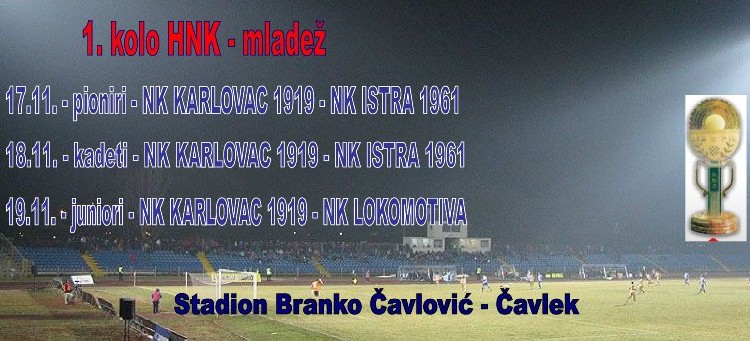 Naš predstavnik u sve tri kategorije je NK Karlovac 1919. Nakon što su proteklog tjedna u pretkolima ovog najmasovnijeg natjecanja uspješno eliminirali iz daljnjeg natjecanja svoje protivnike, pioniri u gostima NK Segestu iz Siska, kadeti kao domaćini NK Veli Vrh iz Pule i juniori također kao domaćini NK Pomorac 1921 iz Kostrene, u 1. kolu HNK na stadionu Branko Čavlović – Čavlek dočekuju svoje protivnike prema sljedećem rasporedu: