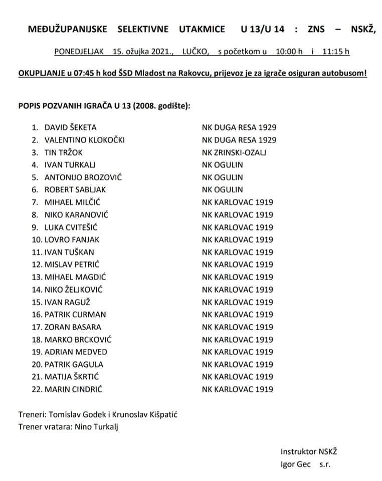 U ponedjeljak će biti održane selektivne utakmice U13 i U14 između Zagrebačkog nogometnog savez i Nogometnog saveza Karlovačke županije. Utakmice se igraju u 10.00 i 11.15 sati.