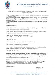 U četvrtak 21.09.2023. godine s početkom u 16,30 sati u dvorani za sastanke ŠSD Mladost na adresi Rakovac 1, 47000 Karlovac, održat će se seminar trenera seniora i mladeži NSKŽ za natjecateljsku sezonu 2023./2024.